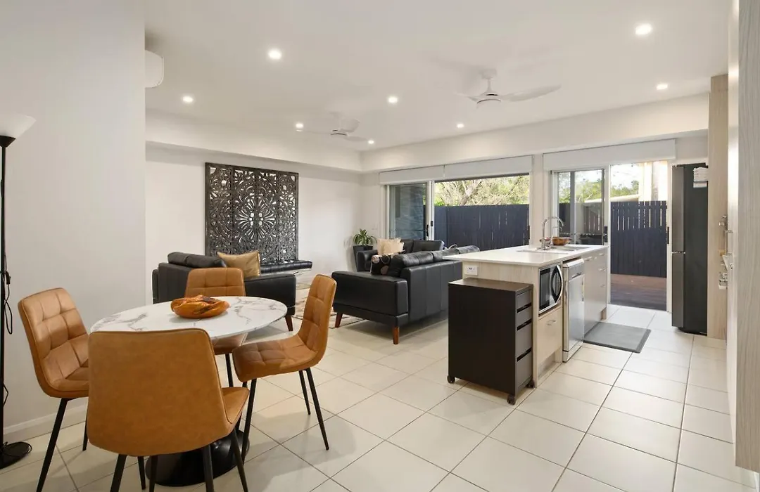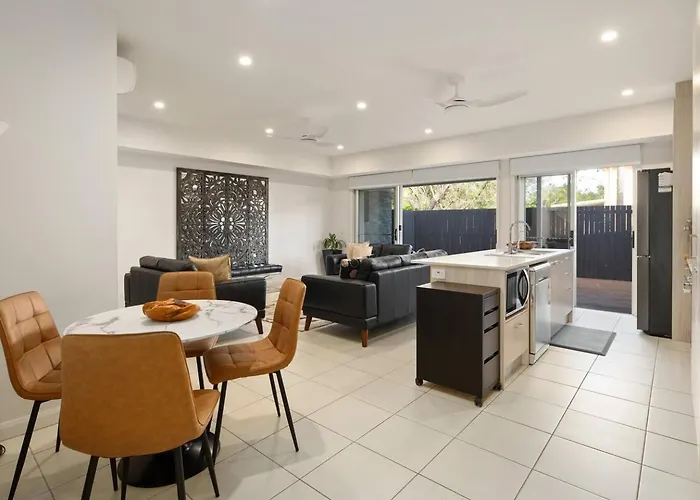 The Gold Coast accommodation features an equipped kitchen fitted with an electric kettle, a fridge, and kitchenware. Pizza Cittadella is a pizzeria serving Italian dishes a short way from Drift & Dwell - Minutes To Labrador Beach & Dining villa. The accommodation is located approximately a 30-minute ride from Coomera train station and a few steps from Wilson St near First Ave bus station.